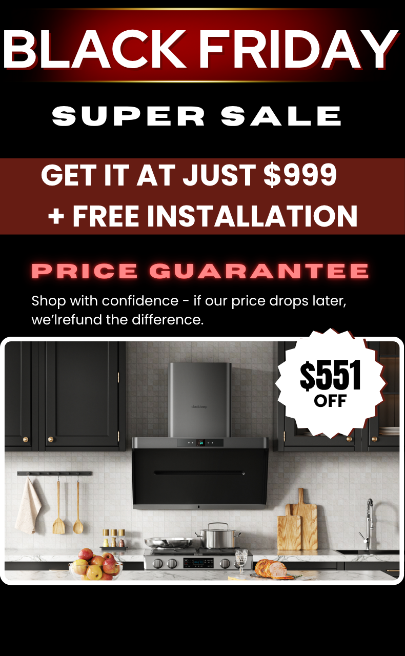 Many top brands offer deep discounts during Black Friday Sale, making it the perfect time to upgrade your kitchen ventilation. CleaDeep's best black friday deal features premium range hoods at limited-time prices, with models starting at just $999. Enjoy powerful suction, quiet operation, and sleek designs while saving big.