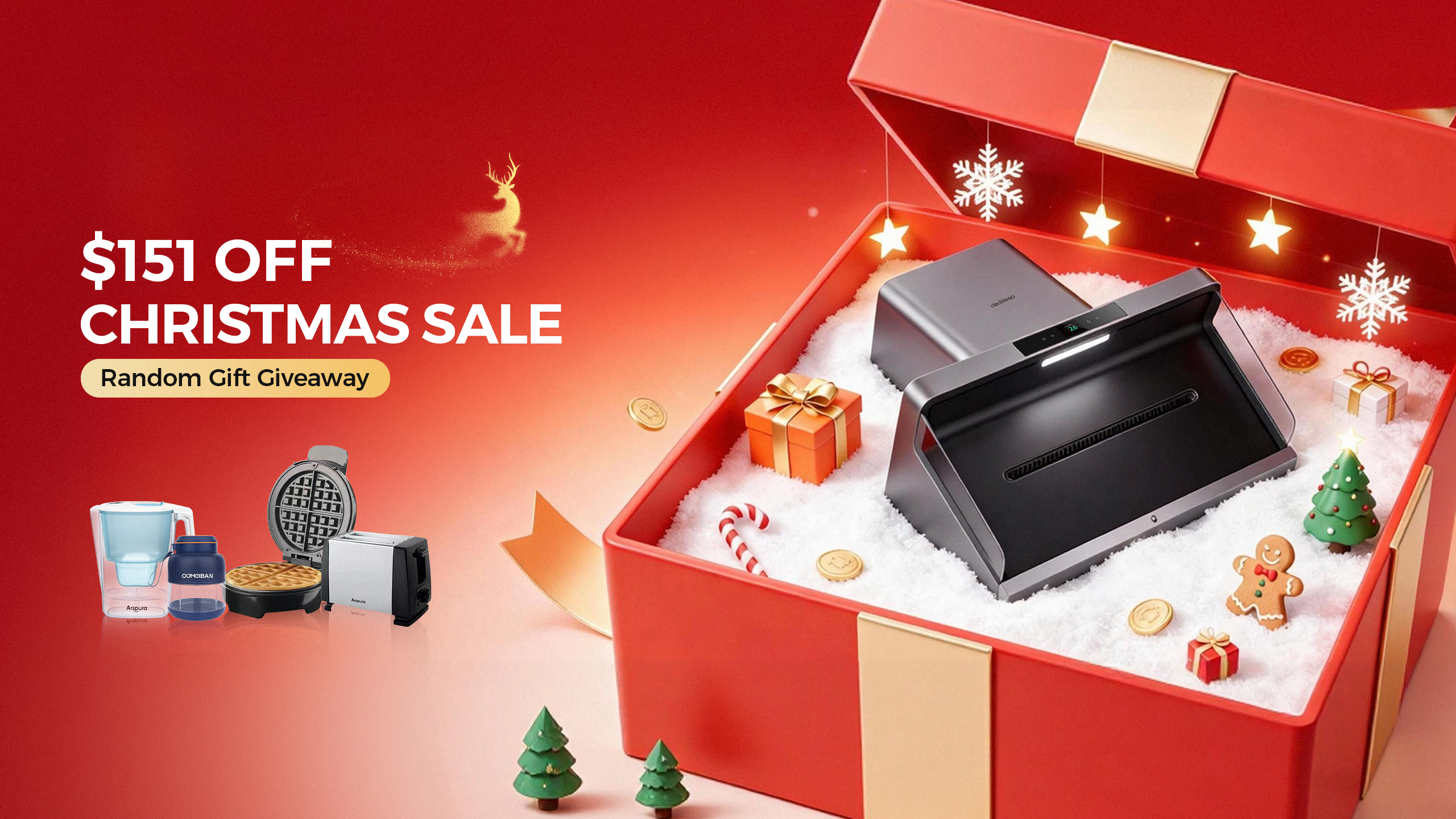 This year’s Christmas Sale applies to our flagship 36-inch CleaDeep range hood, now discounted by $151 OFF and bundled with a free gift. The 30-inch model is not included in this promotion.